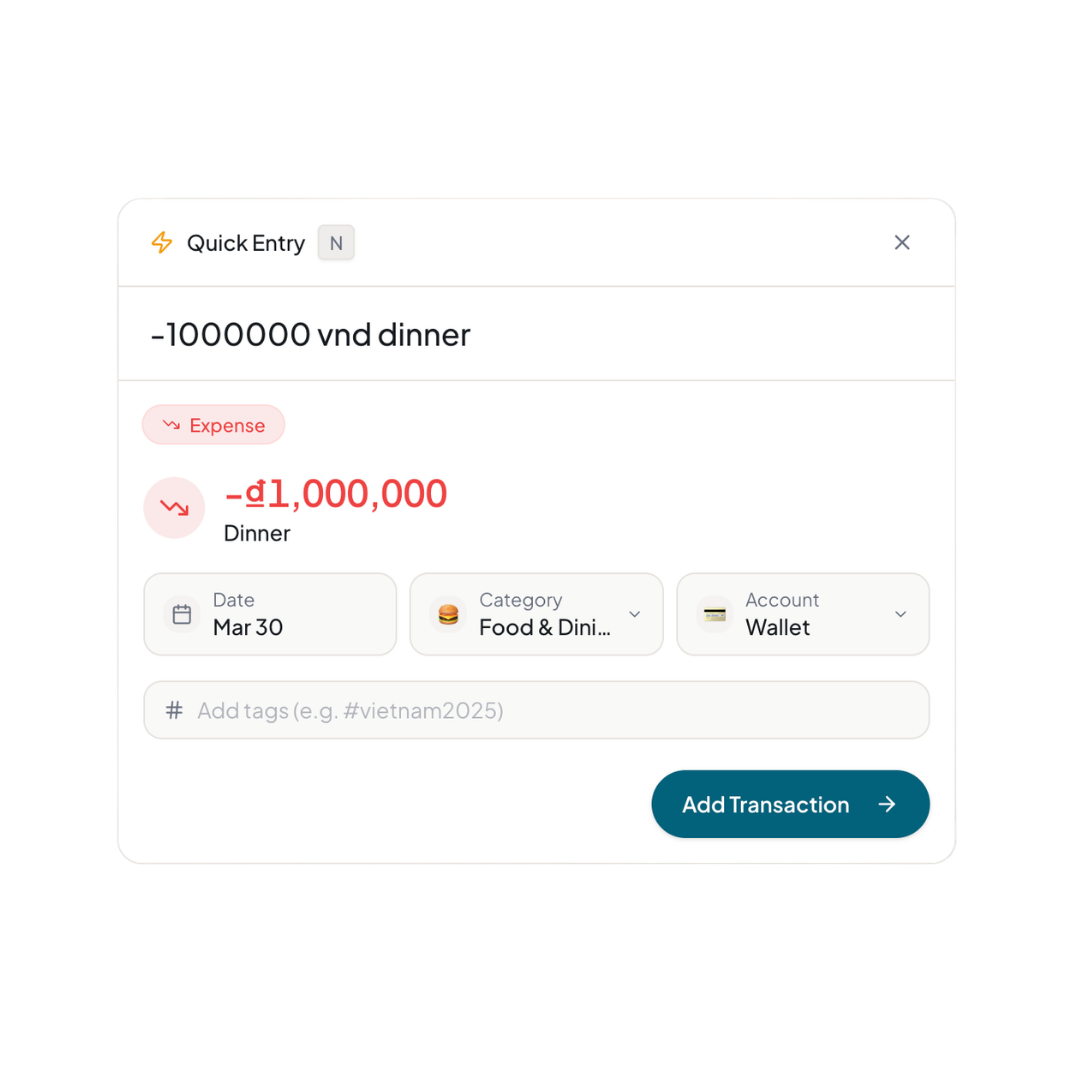 Tap, type, done. Our parser automatically recognizes the category of your transaction so you don't have to go through numerous clicks.